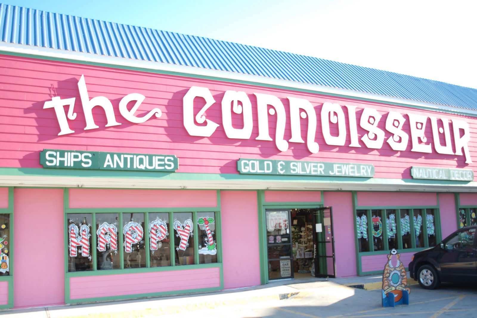 This store, in Port Aransas Texas, the Connoisseur has a cat named Rat! She is a gorgeous calico with a lovely disposition! The store personnel were extremely friendly too! The lady at the counter told me that when the kitten was
